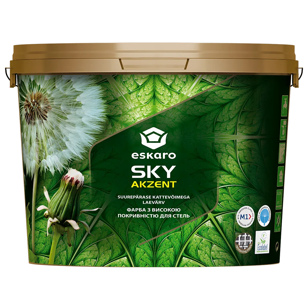 Акрилатна водорозірджувана глибокоматова високопокривна фарба для стель в сухих приміщеннях із нормальними умовами експлуатації.Фарбування стель у сухих житлових і громадських приміщеннях (вітальнях, спальнях, офісах, готелях тощо). Може використовуватися як ґрунтувальна фарба для фарбування матовими і напівматовими водно-дисперсійними фарбами (Akzent, Mattilda, Akrit і т. д.) стін і стель у сухих приміщеннях.
