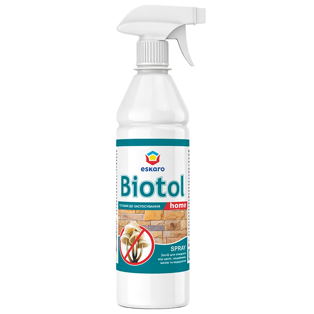 Готовий до використання. Засіб рясно розпорошувати (нанести пензлем або губкою) на поверхню, уражену мікроорганізмами за температури вище +5ºС. Під час нанесення слід уникати потрапляння засобу на розташовані поруч предмети. Якщо поблизу знаходяться рослини, квіти, городні культури, трава та кущі, їх слід закрити поліетиленовою плівкою. Через 1-2 дня (при зміні кольорів виростань) поверхню ретельно очистити шкребком, твердою щіткою або губкою. Для профілактики повторного виникнення біологічних забруднень поверхню після механічного очищення обробити засобом Biotol home ще раз. Перед фарбуванням або шпаклюванням оброблена поверхня має бути просушена не менше доби за нормальних умов. Оброблена деревина повинна бути просушена й відповідати рекомендаціям з вологості деревини для подальшої обробки лакофарбовими матеріалами.Робочі інструменти