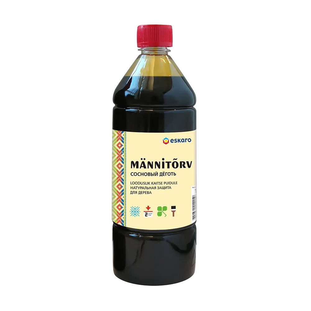 | Нанесення ✔️Перед застосуванням перемішати. Для збільшення вбирання в щільну деревину дьоготь рекомендується розбавити натуральним живичним скипидаром Männitärpentin (до 20% за об’ємом). Дьоготь наносити жорстким пензлем і добре втирати в деревину, так щоби шар дьогтю повністю вбрався в поверхню, після чого дерево на дотик здається сухим. Наносити засіб рівномірно від краю до краю, уздовж волокон деревини. Особливо ретельно обробити торці. Надлишки дьогтю видалити ганчіркою. Поверхні, що зазнають атмосферні впливи впродовж усього року, рекомендується обробляти щорічно. Якщо на одній поверхні використовується дьоготь із різних партій, засіб необхідно перемішати в одній ємності для отримання однорідного кольору. |