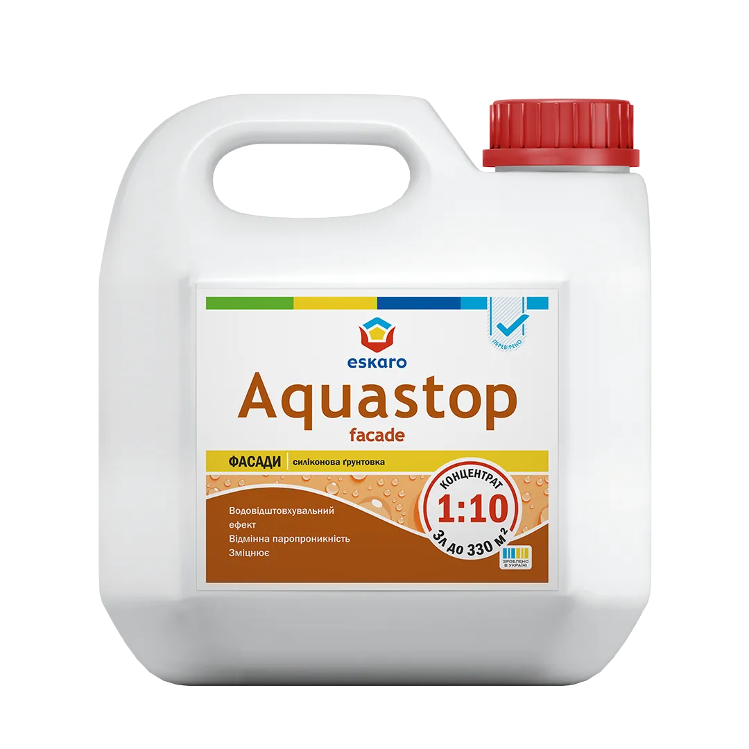 | Нанесення ✔️Перемішати. Розбавити ґрунтовку-концентрат чистою прохолодною водою в співвідношенні 1:3–1:10 (ступінь розведення залежить від типу і якості поверхні). Перемішати готову ґрунтовку. Нерозбавлену ґрунтовку-концентрат використовувати не рекомендується. Розведену ґрунтовку AQUASTOP FACADE наносити в 1–2 шари пензлем, валиком за температури навколишнього повітря та основи від +10°С до +30°С. На пористу поверхню наносити не менше 2 разів методом «мокрим по мокрому». |