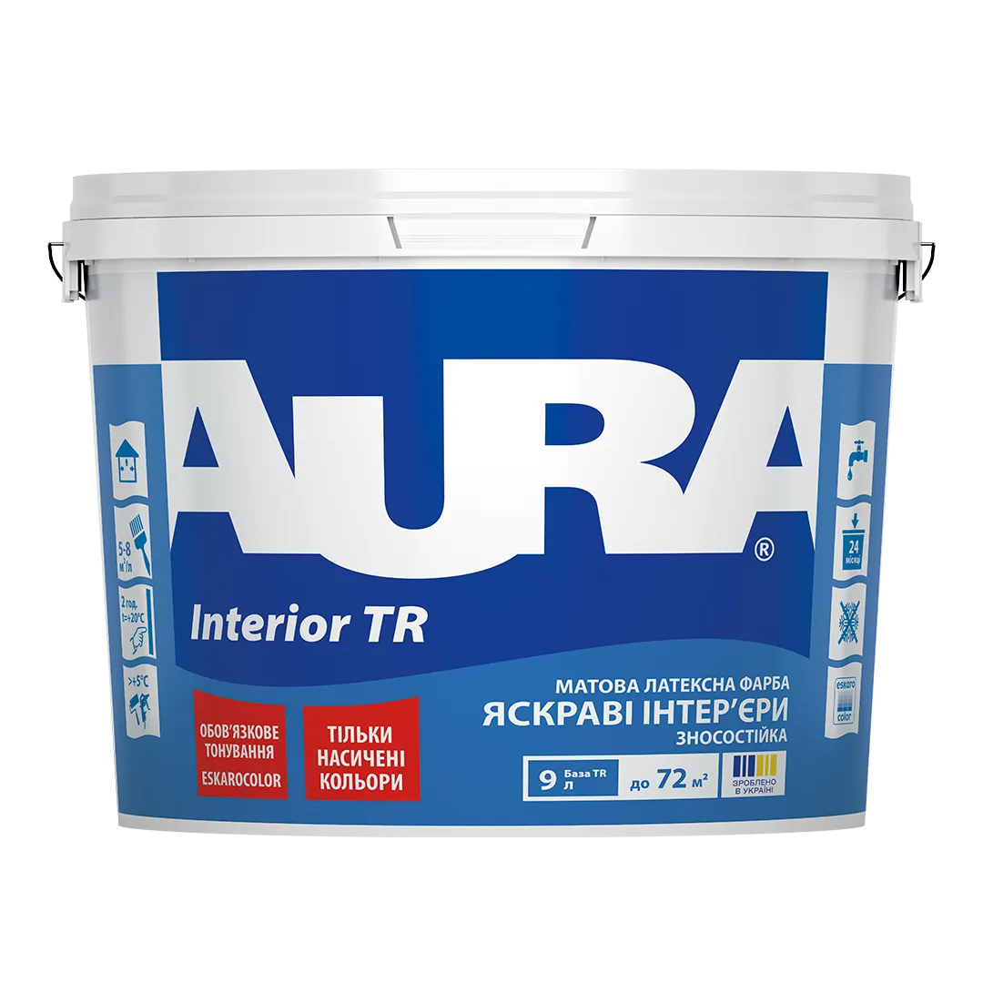 | Нанесення ✔️Під час фарбування нових або контрастних кольорових основ необхідно нанести 1–2 шари ґрунтувальної білої інтер’єрної фарби (бази А), яка затонована в колір, максимально близький до кольору фінішного покриття (бази TR), так щоб у результаті було досягнуто повне перекривання поверхні. Як ґрунтувальну фарбу рекомендується використовувати фарбу Aura Mattlatex або фарбу Aura Neolatex. Перед нанесенням фінішної фарби (TR - бази) поверхня повинна мати рівномірний колір без плям і «колірних переходів». Це необхідно для підвищення покривності затонованого фінішного покриття (бази TR). Фарбу Aura Interior TR використовувати тільки в затонованому (за системою Eskarocolor) вигляді. Перед застосуванням фарбу Aura Interior TR ретельно перемішати. Наносити на правильно підготовлену поверхню валиком, пензлем або розпилювачем у два шари. Для насичених червоних, помаранчевих, жовтих, салатових кольорів може знадобитися нанесення 3-го шару. При розпиленні під високим тиском застосовувати сопло 0,017–0,021". Роботи рекомендується проводити за температури навколишнього повітря та основи +(20±2)ºС та відносної вологості повітря 65±5%. Не наносити фарбу за температури нижче +5ºС і вище +30ºС. Для фарбування великих площ рекомендується використовувати затоновану фарбу з однієї партії виробництва. За наявності тонованої фарби з різних партій виробництва рекомендується їх попередньо змішати в одній ємності. Увага! Покриття набуває остаточний колір після висихання фарби. Догляд за пофарбованою поверхнею. Очищення пофарбованої поверхні рекомендується здійснювати м'якою губкою або м'якою тканиною з використанням теплого розчину мийного засобу, уникаючи натирання. Зі свіжопофарбованою поверхнею слід поводитися обережно протягом 3-4 тижнів. Якщо необхідно очищати поверхню раніше цього терміну, рекомендується легке очищення м'якою вологою тканиною. |